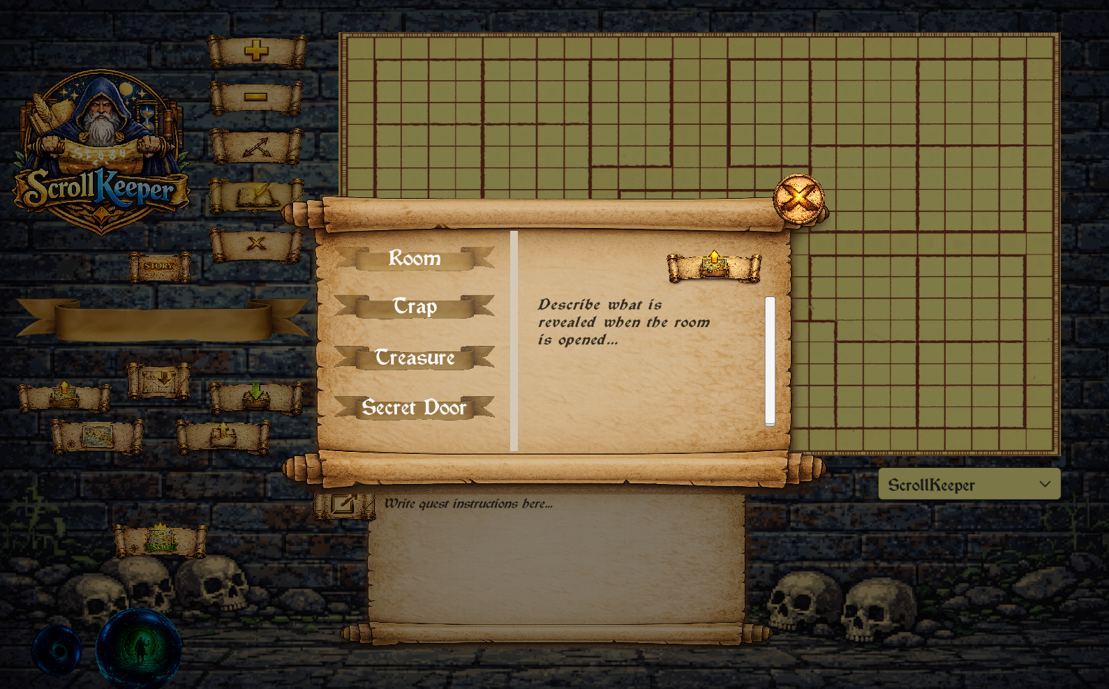ScrollKeeper is a creative tool for Dungeon Masters, storytellers, and solo players who want to build, narrate, and share adventures in a clear, visual, and immersive way.