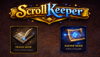 Designed for tabletop RPGs, digital campaigns, and solo play, ScrollKeeper turns your ideas into interactive scrolls—ready to be played, revealed, or shared with the community.